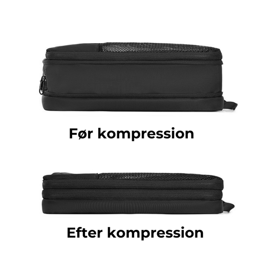 Komprimer dit tøj direkte i tasken med den indbyggede vakuumpumpe og spar plads uden ekstra udstyr.