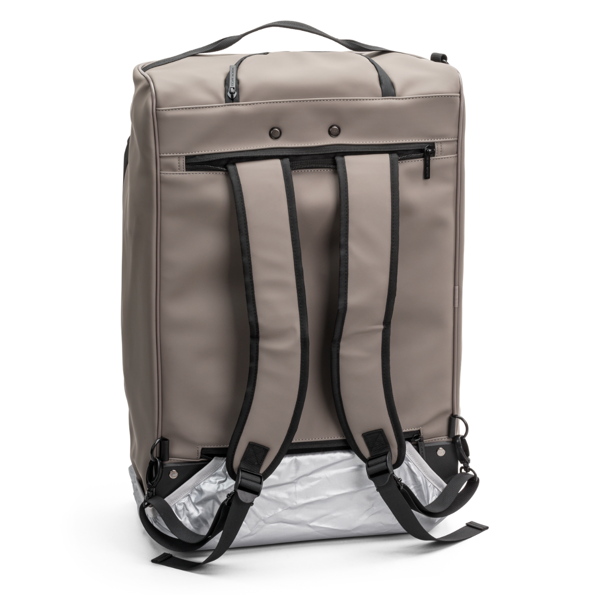 Kabinekufferten kan bruges som klassisk trolley med teleskophåndtag, den kan bæres over skulderen eller anvendes som rygsæk via de skjulte rygsæksremme.