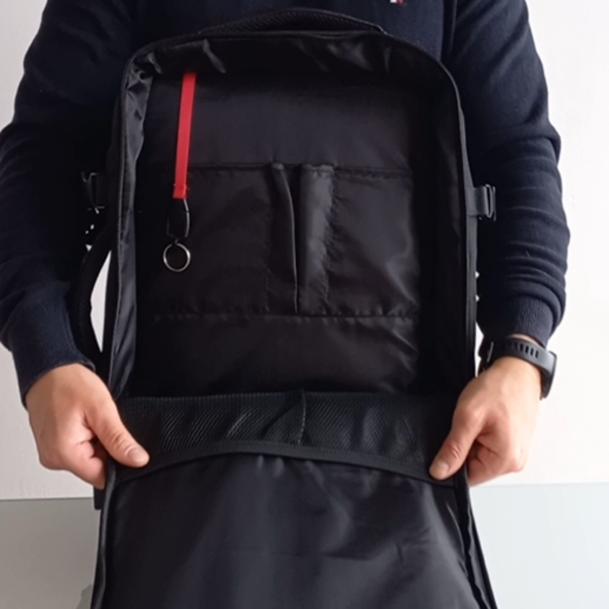 Med tre rummelige rum og en smart vakuum funktion, er denne taske designet til at imødekomme alle dine behov og gør det muligt at pakke ekstra, på mindre plads. Med den åndbare bagside og justerbare stropper, sikrer du maksimal komfort, uanset om du er på forretningsrejse, eller eventyr.