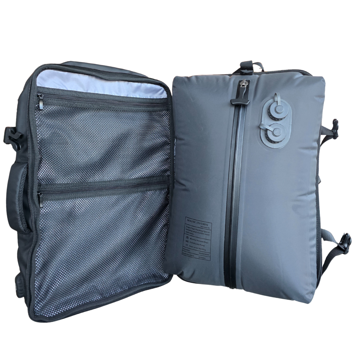 en indbygget vakuumpose, der nemt komprimerer dit tøj og skaber mere plads.
