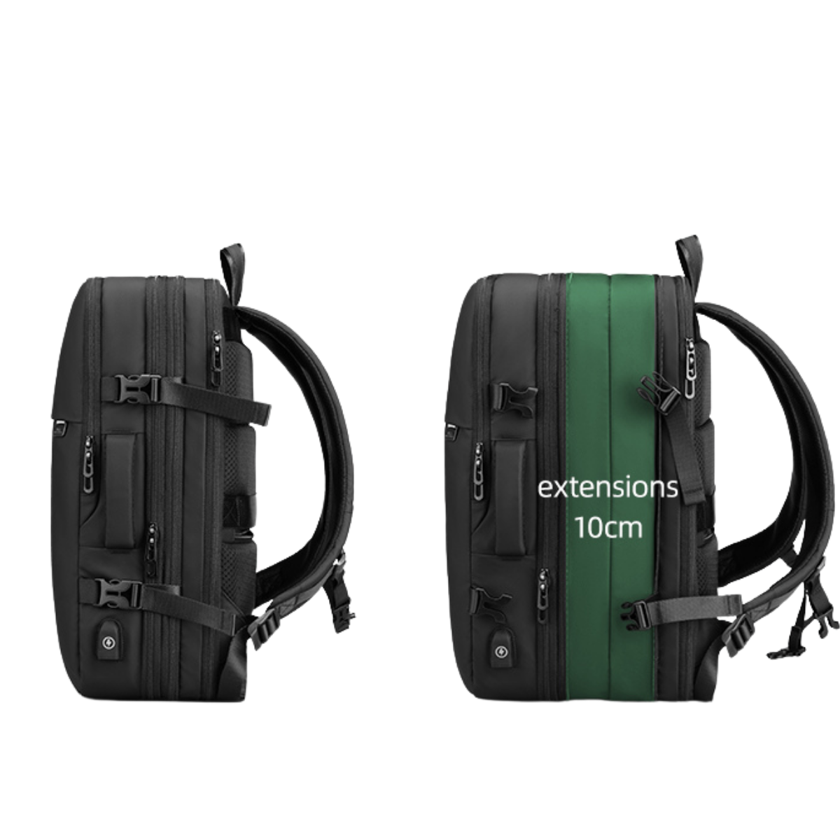 Taskens midterste rum kan udvides med hele 10 cm, hvilket fordobler taskens